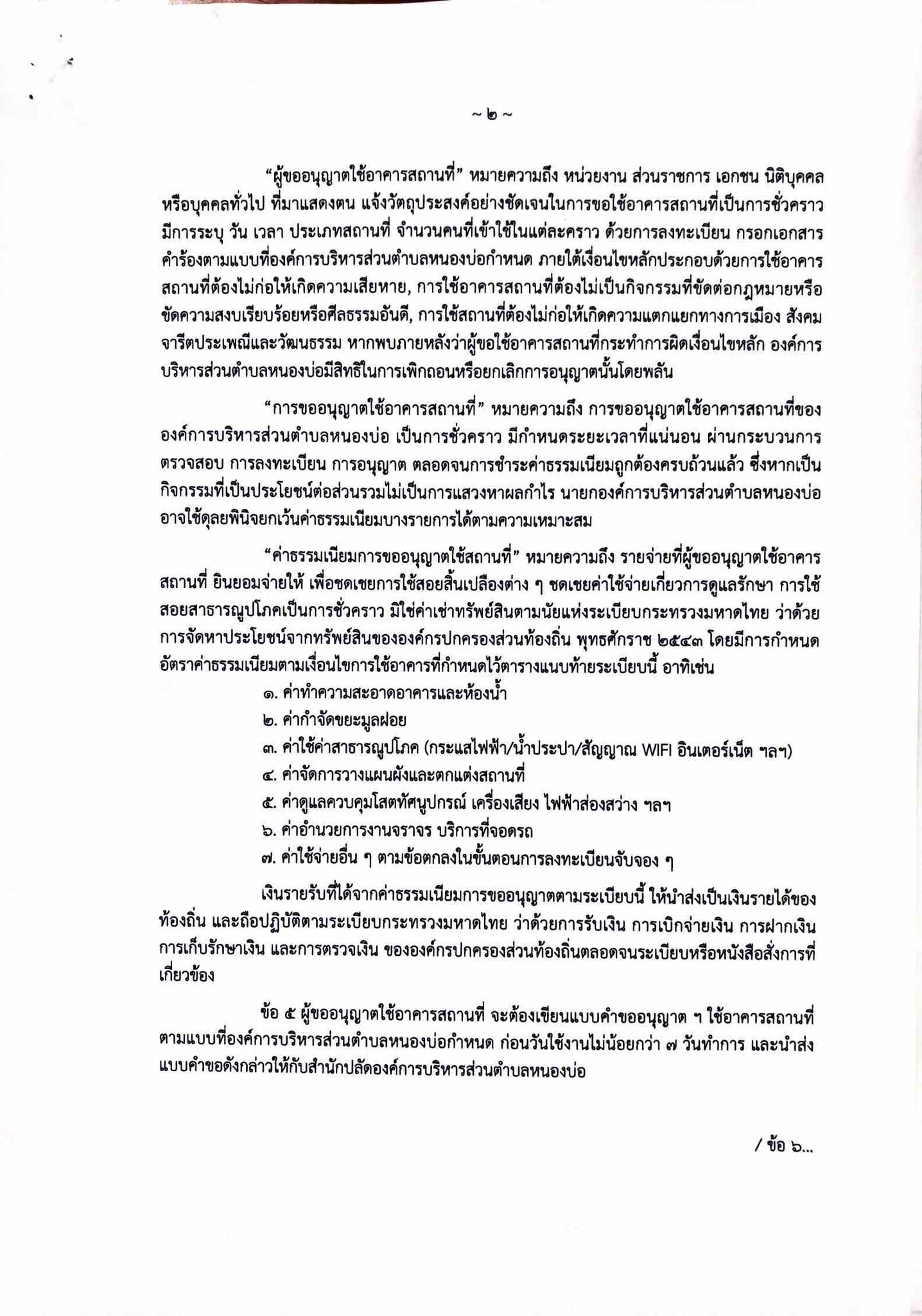 ประกาศองค์การบริหารส่วนตำบลหนองบ่อ ระเบียบองค์การบริหารส่วนจำบลหนองบ่อ ว่าด้วยการขออนุญาตใช้อาคารสถานที่ พ.ศ.2568