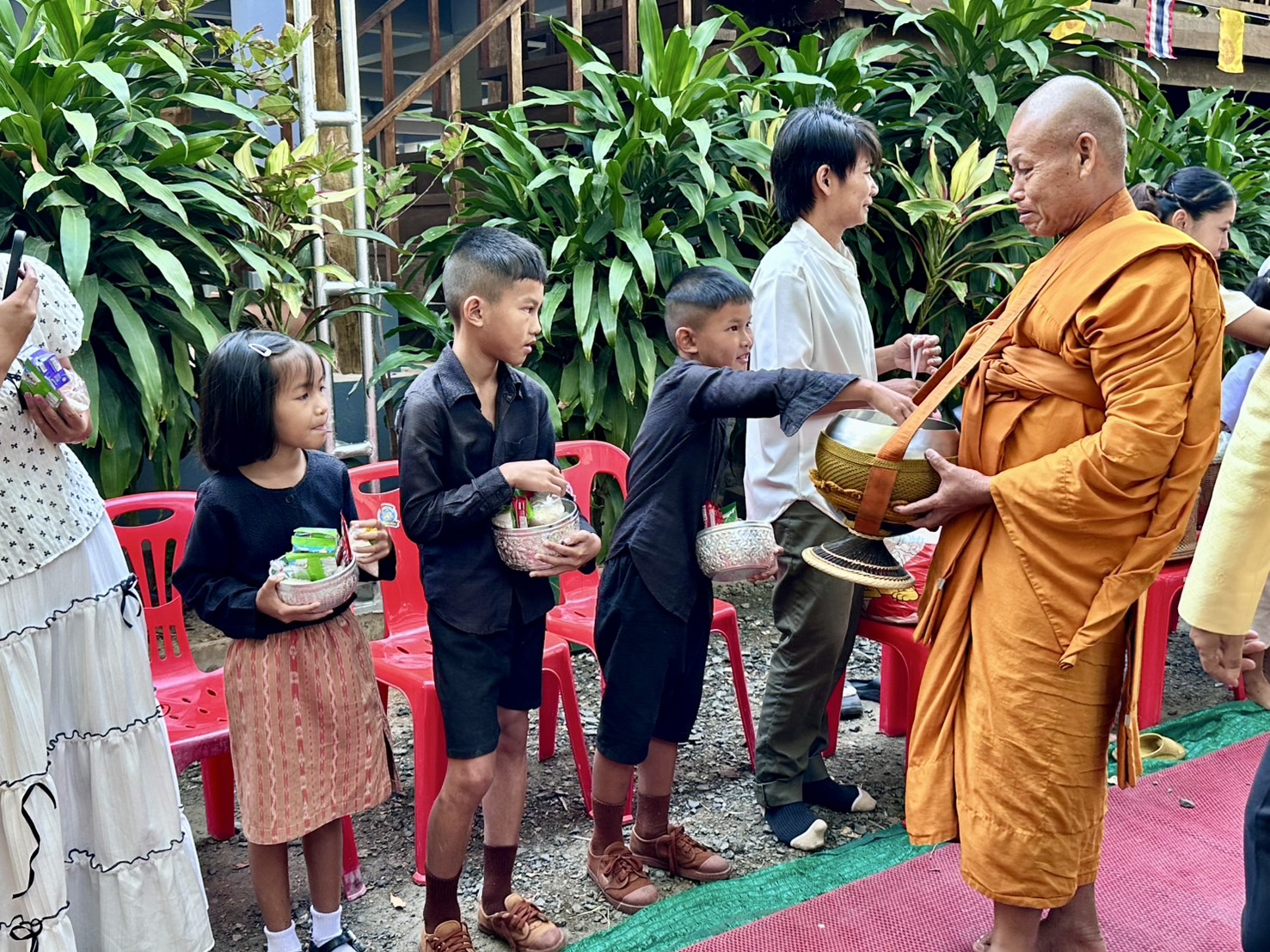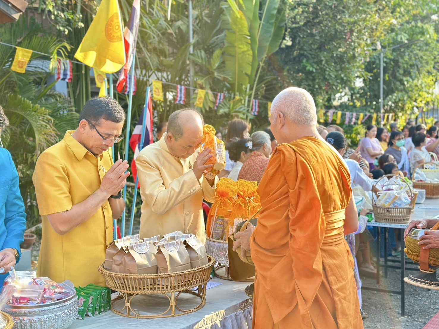 ทำบุญตักบาตร ข้าวสาร อาหารแห้ง ถวายภัตตาหารเพล ตามโครงการ พลัง บวร สู่การสร้างความเข้มแข็งของชุมชน
