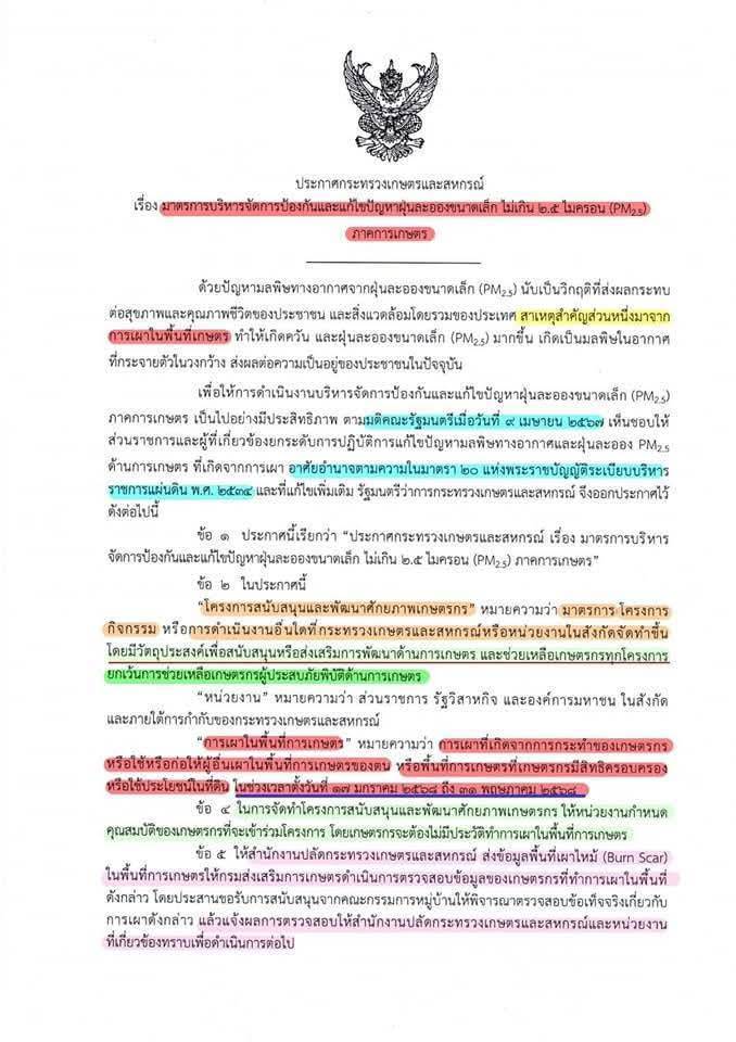 มาตรการบริหารจัดการป้องกันและแก้ไขปัญหาฝุ่นละอองขนาดเล็กไม่เกิน 2.5 ไมครอน (PM 2.5) ภาคเกษตร