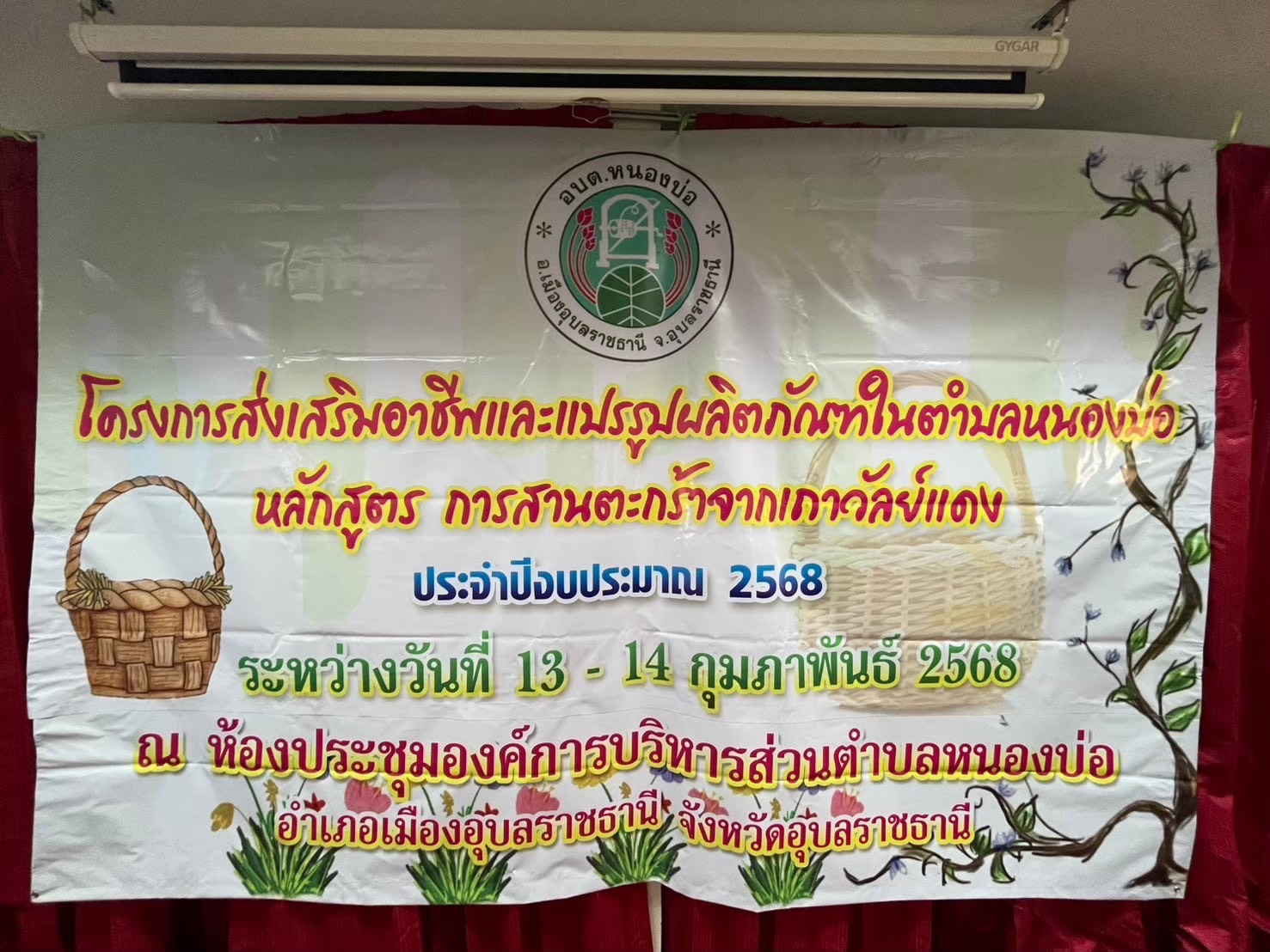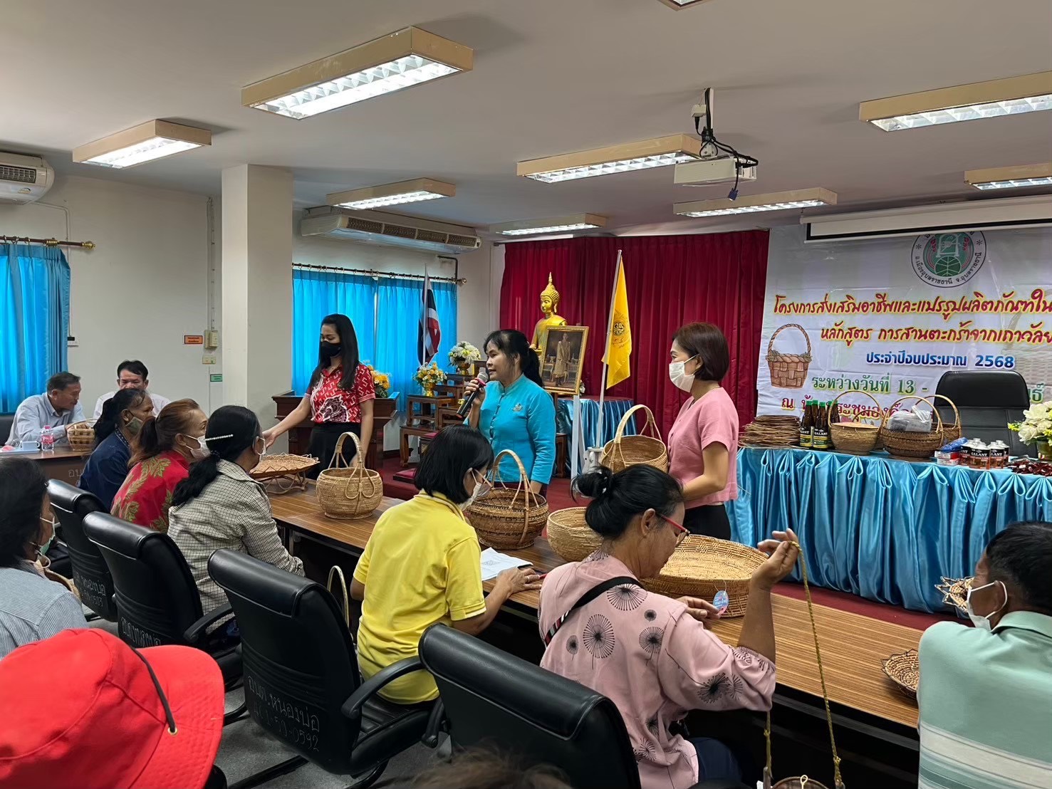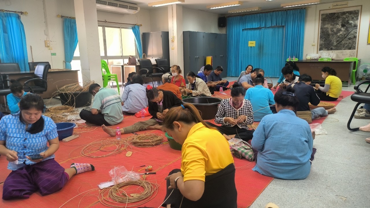 นายพินิจ ส่งเสริม นายกองค์การบริหารส่วนตำบลหนองบ่อ และคณะผู้บริหาร และหัวหน้าส่วนราชการเข้าร่วมโครงการส่งเสริมอาชีพและการแปรรูปผลิตภัณฑ์ให้กับกลุ่มอาชีพในตำบลหนองบ่อ หลักสูตรการสารตะกร้าจากเถาวัลย์แดงประจำปีงบประมาณ 2568