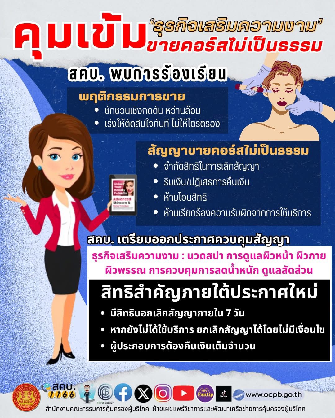 สำนักงานคณะกรรมการคุ้มครองผู้บริโภค (สคบ.) ประชาสัมพันธ์ ข่าว สคบ. ด้านการคุ้มครองผู้บริโภค ให้ประชาชนทราบเพื่อเป็นประโยชน์ต่อไป