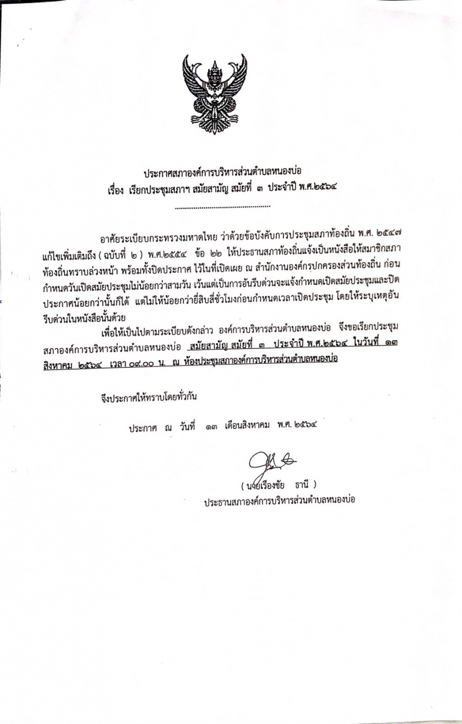 ประกาศเรียกประชุมสภาฯสมัยสามัญ สมัยที่3 ประจำปี พ.ศ.2564 วันศุกร์, 13 สิงหาคม 2564 09:48 Print Email back to top