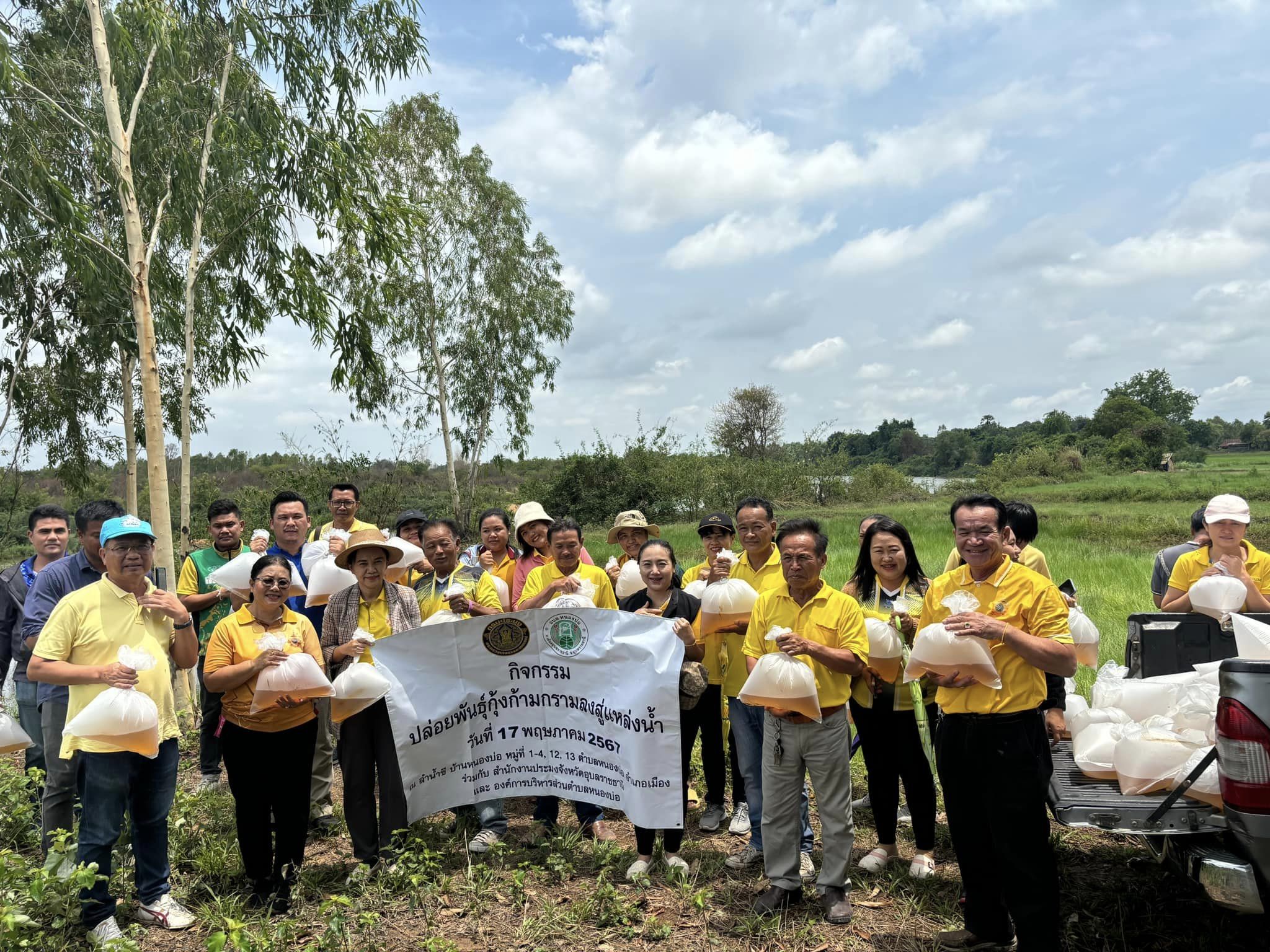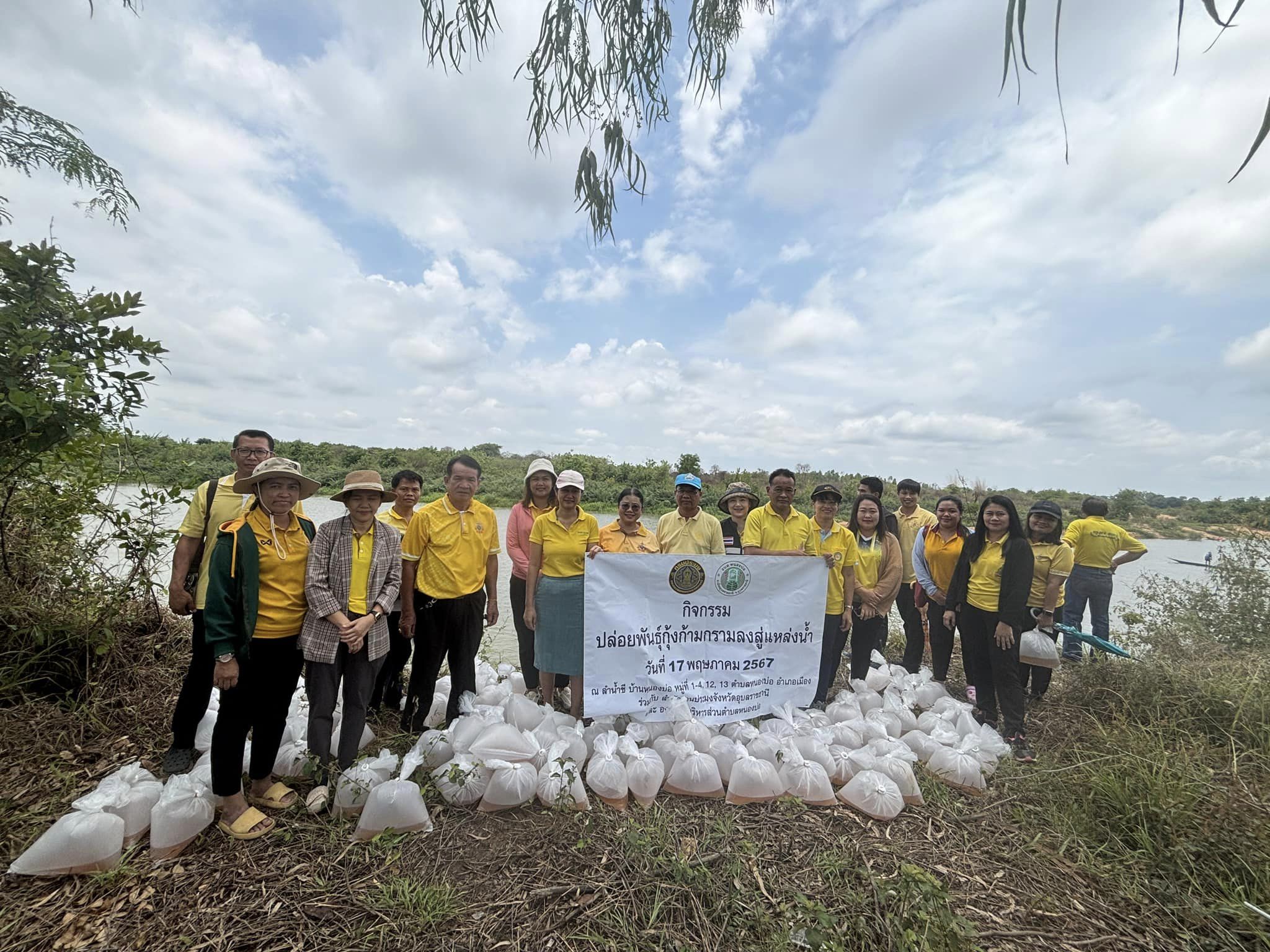 กิจกรรมปล่อยพันธุ์สัตว์น้ำกุ้งก้ามกรามในแหล่งน้ำชุมชน ตามโครงการบริหารจัดการทรัพยากรประมง กิจกรรมผลิตลูกพันธุ์สัตว์น้ำปล่อยแหล่งน้ำ ประมงจังหวัดอุบลราชธานี