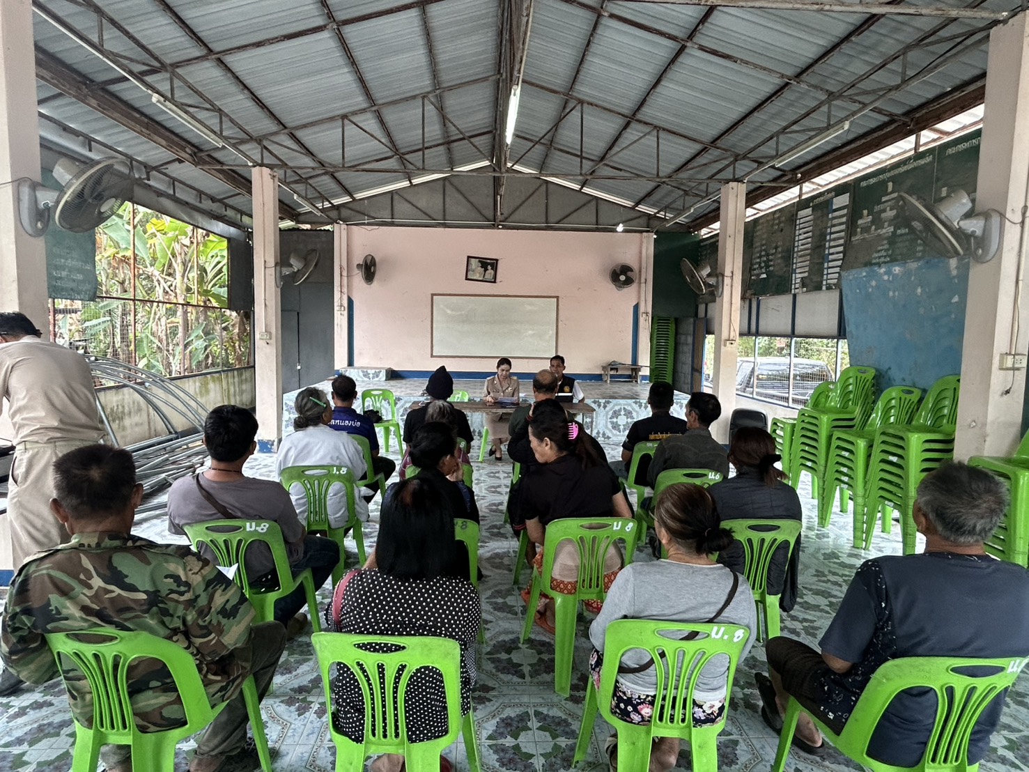และผู้นำชุมชนร่วมประชาคมการให้ความช่วยเหลือผู้ประสบภัยพิบัติ(อุทกภัย)ปี2568 ณ ศาลากลางหมู่บ้าน หมู่ที่8