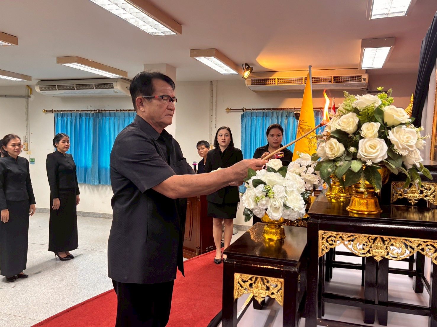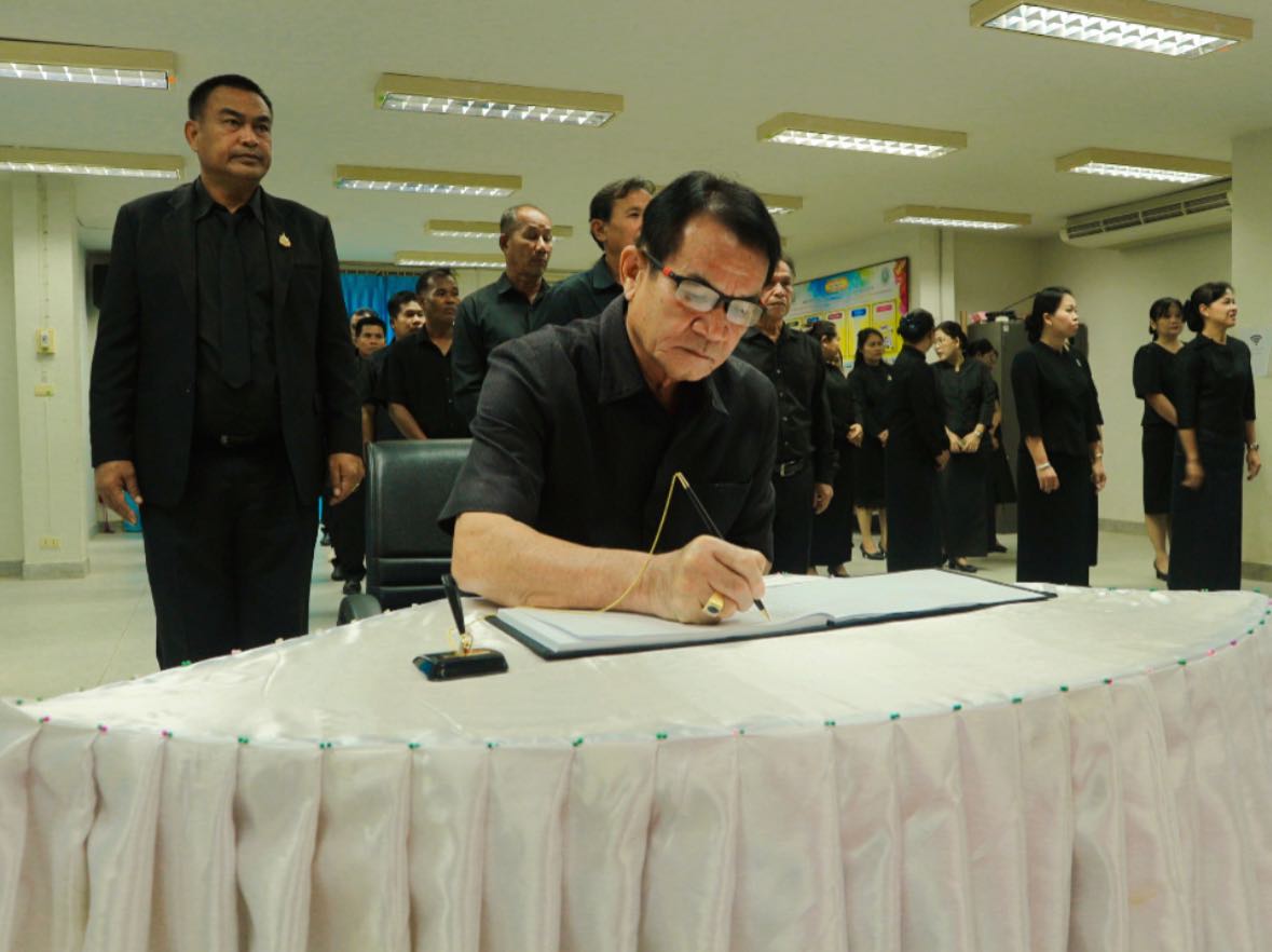 วันศุกร์ที่ 7 พฤศจิกายน 2568เวลา 09.30 น. นายพินิจ ส่งเสริม นายกองค์การบริหารส่วนตำบลหนองบ่อ พร้อมด้วยคณะผู้บริหาร สมาชิกสภา หัวหน้าส่วนราชการ พนักงานส่วนตำบล พนักงานจ้าง และเจ้าหน้าที่ตำบลหนองบ่อ ร่วมพิธีถวายความอาลัย สมเด็จพระนางเจ้าสิริกิติ์