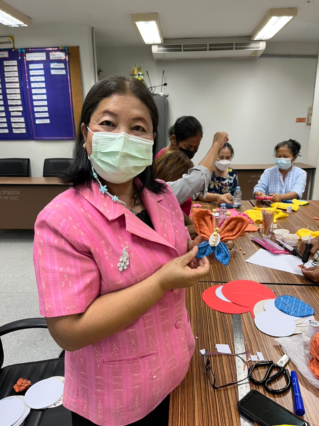 โครงการส่งเสริมอาชีพในตำบลหนองบ่อ หลักสูตร การประดิษฐ์ผีเสื้อจากผ้าพื้นเมือง ประจำปีงบประมาณ 2565