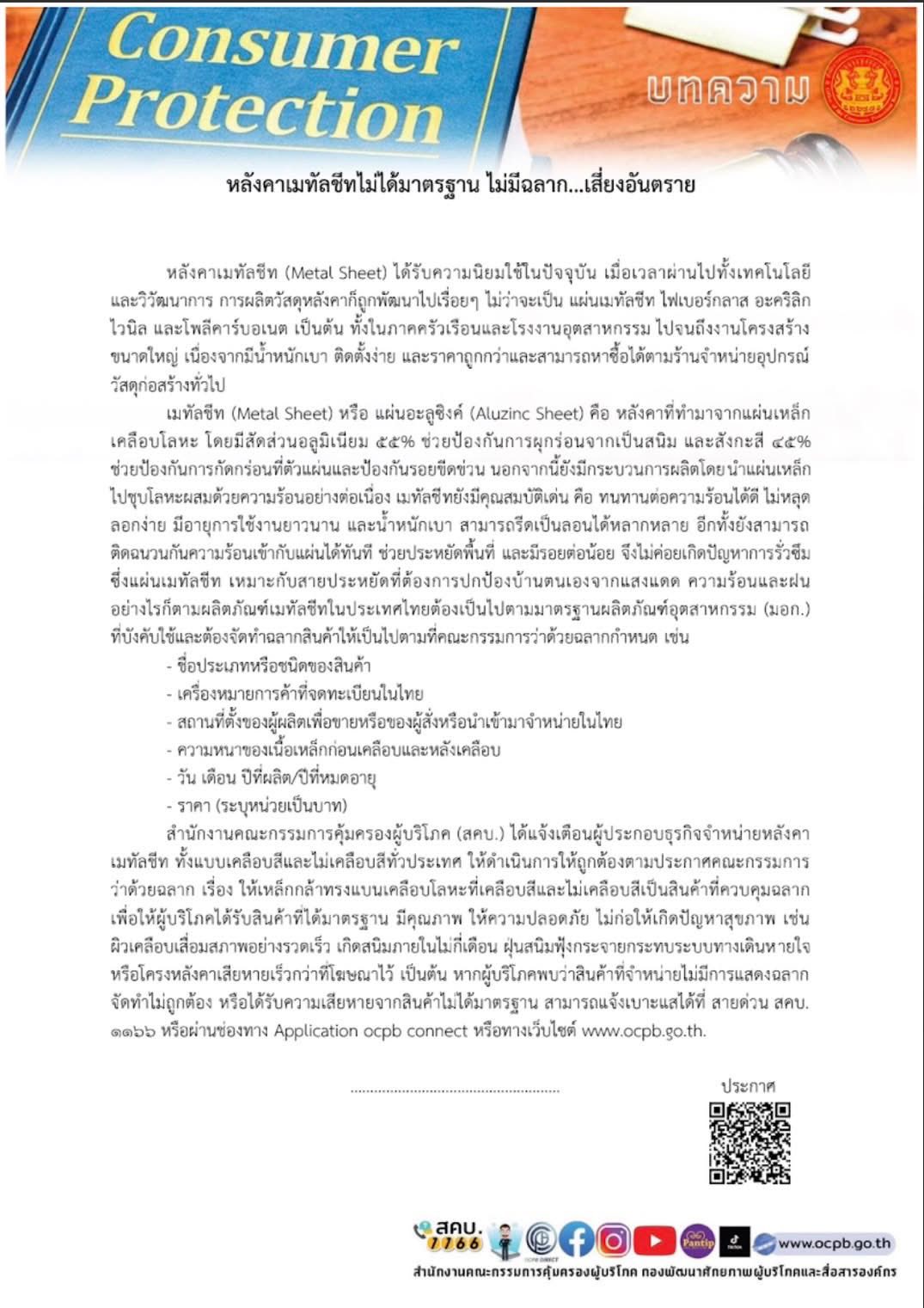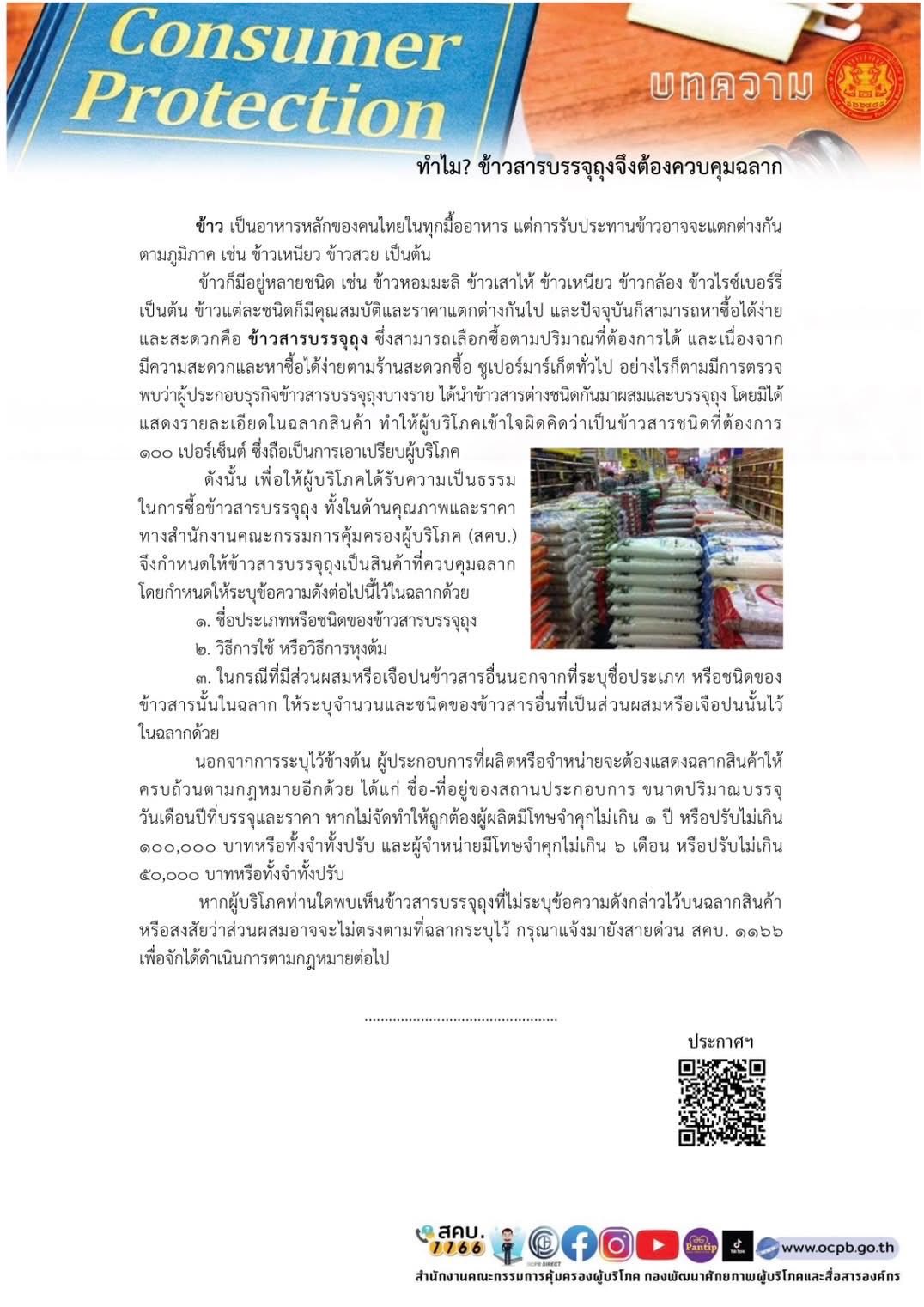 ข่าวประชาสัมพันธ์ ข้อมูลข่าวสาร สคบ. ด้านการคุ้มครองผู้บริโภค จำนวน 4 เรื่อง
