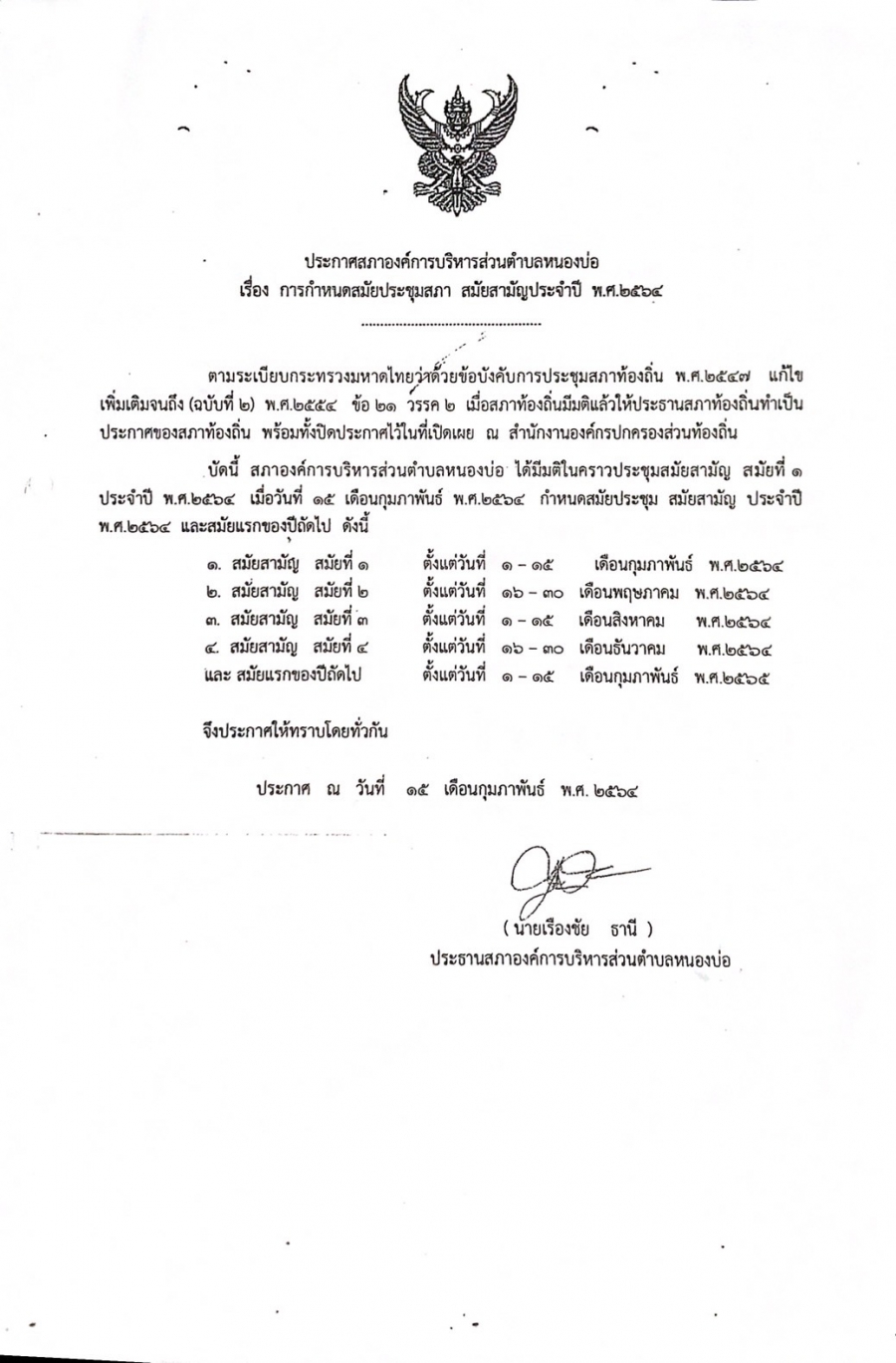 ประกาศกำหนดสมัยการประชุมสภาฯ สมัยสามัญ ประจำปี พ.ศ.2564 วันจันทร์, 15 กุมภาพันธ์ 2564 08:51 Print Email back to top